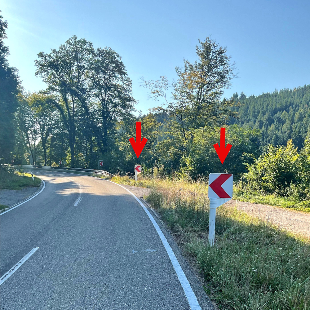 Wir haben im Anschluss zu unserer gemeinsamen Unterfahrschutz-Aktion an der K 4564 geprüft, ob wir die Kurvenhinweise tauschen können. Die beiden freistehenden Kurvenleittafeln wurden mittlerweile auch bereits ersetzt. Unsere Straßenmeisterei ist dabei, an allen vergleichbaren Stellen im Enzkreis die defekten und abgängigen starren Kurvenleittafeln durch flexible zu ersetzen. Somit werden sukzessive alle freistehenden Tafeln ausgetauscht.